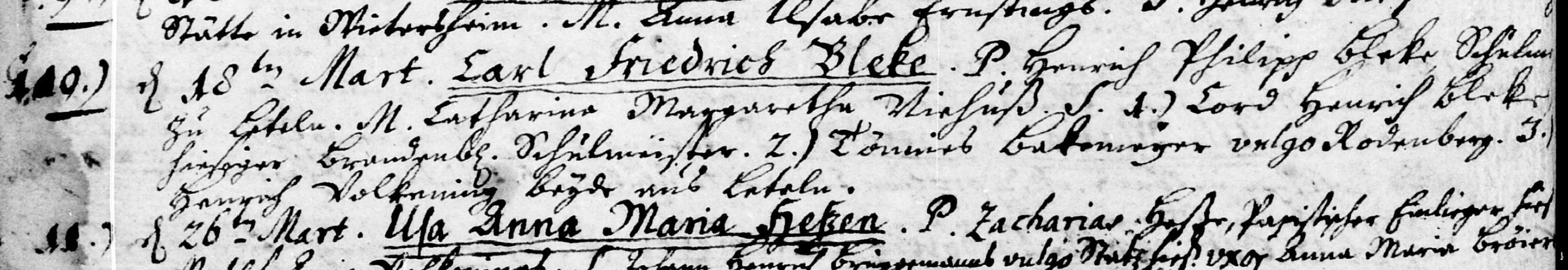 10.) On March 18th Carl Friedrich Bleke. Father Heinrich Philipp Bleke schoolmaster