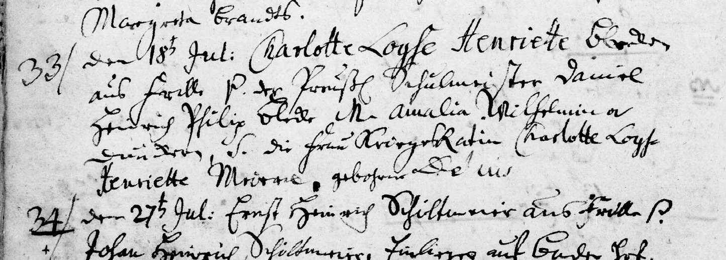 33 den 18ten Jul[ii]: Charlotte Loyse Heinriette Bleeken