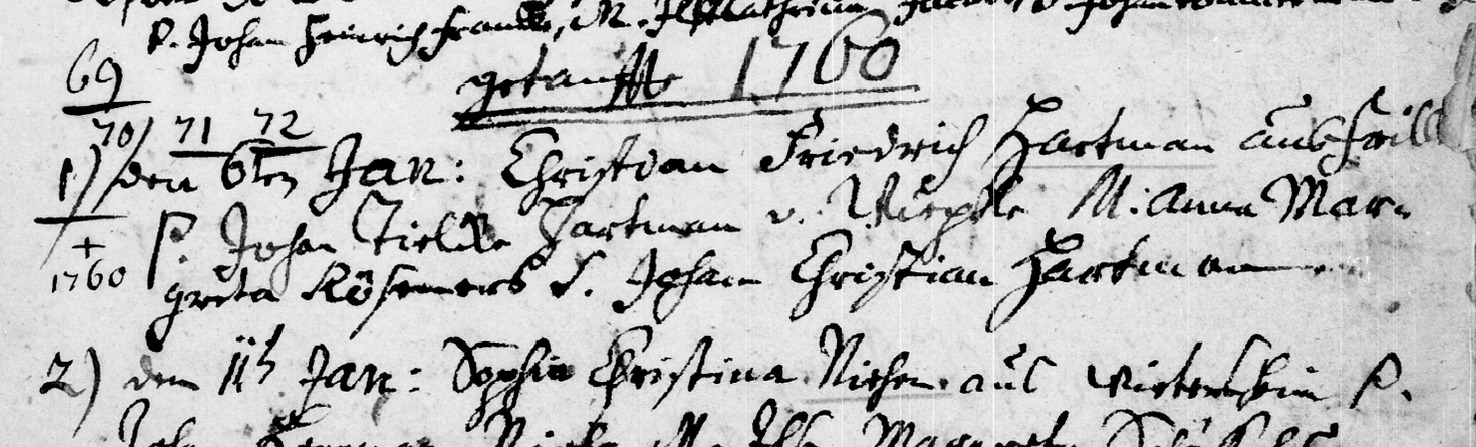 The baptism and birth year of 1760 is written on page 13 (of the baptism pages), just below the middle of the page, on image 9: