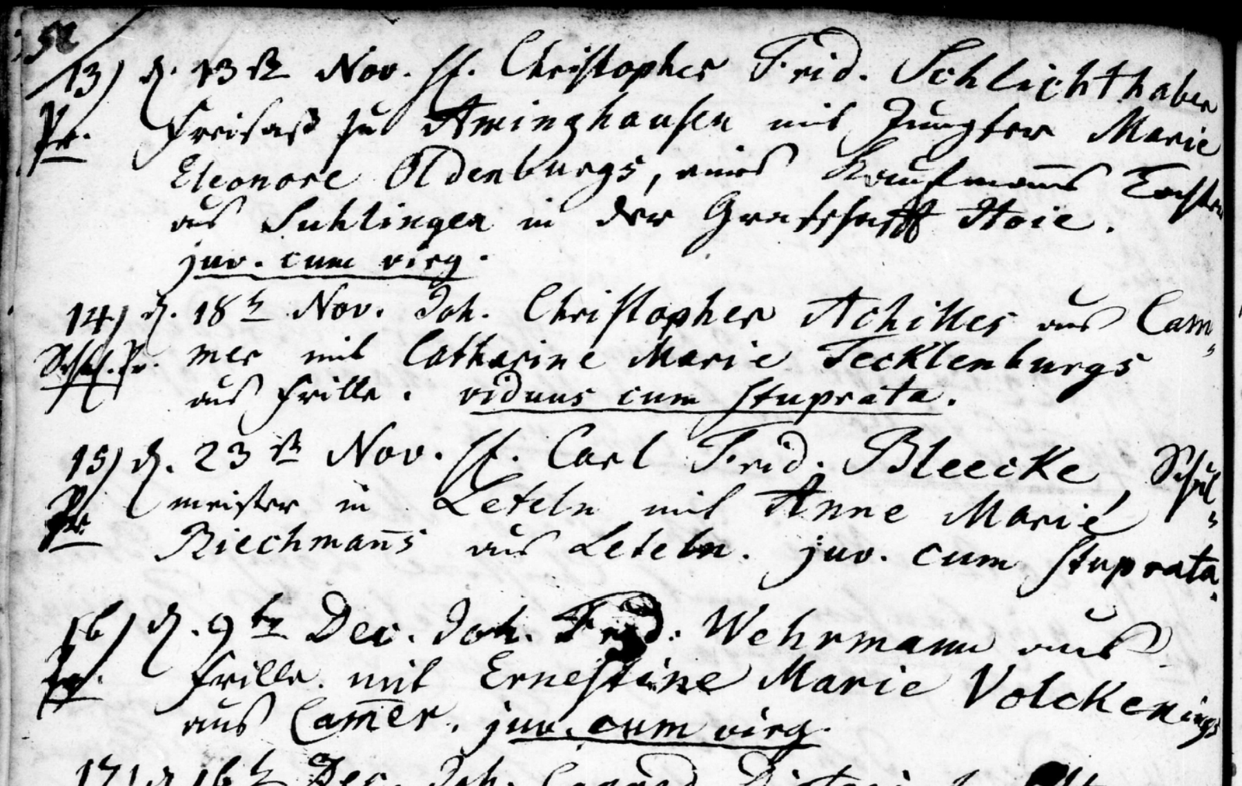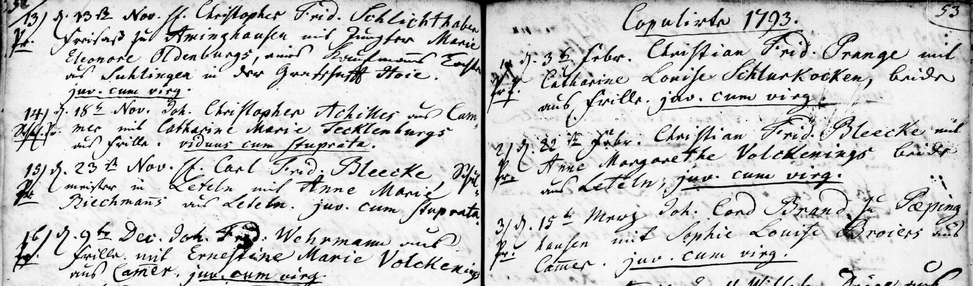 Carl Fridrich Bleeke’s marriage in 1792 to Anne Marie Rieckmann is on image 202, page 52 (of the listing of Copulierte (marriages) of the Frille "Verzeichnis der Getauften, Getrauten, Gestorbenen (Register of Baptism, Marriages, Deaths) 1758-1804 ".