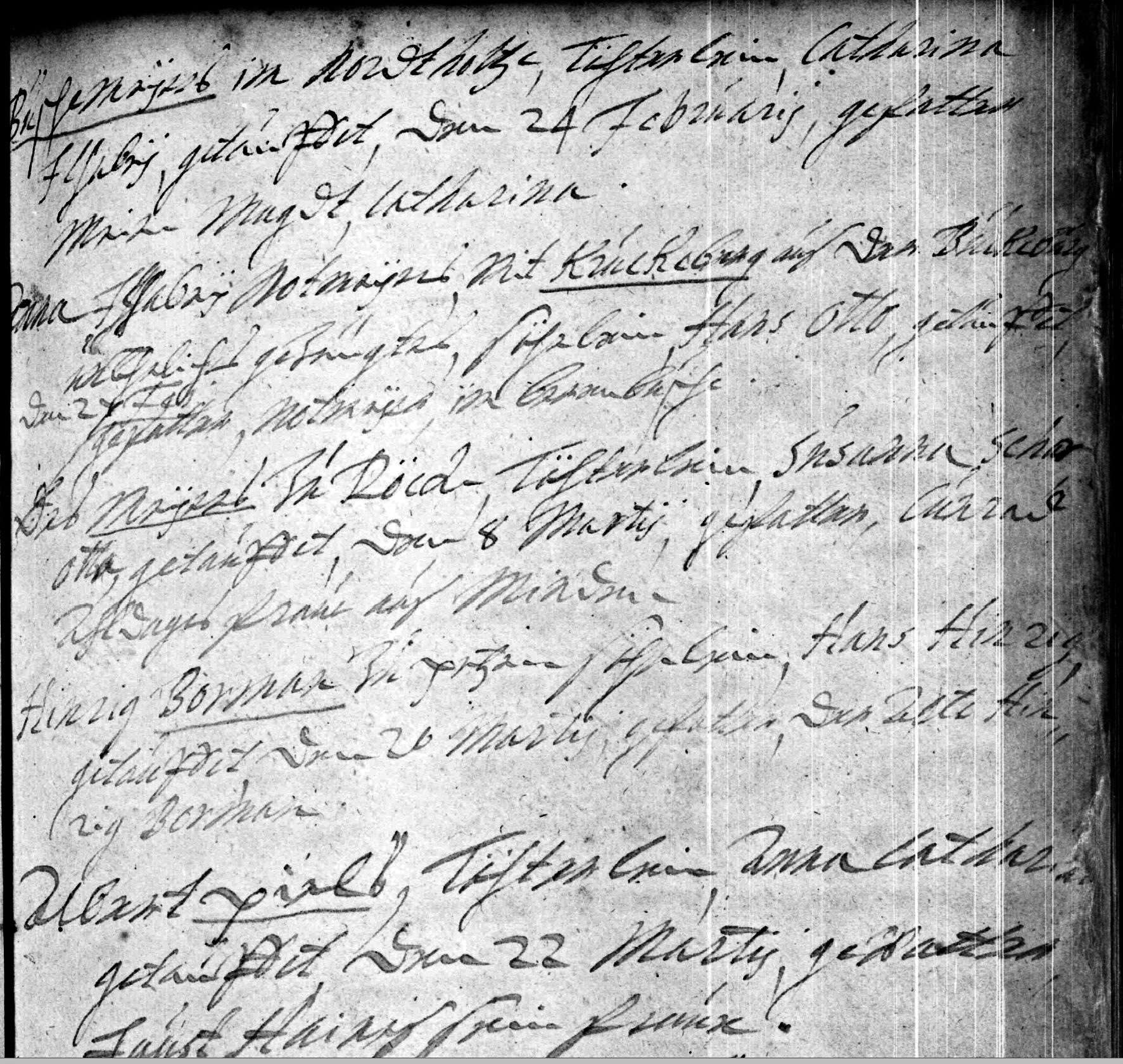 Anna Elisbeth Notmaier, with Kückeberg from Bückeburg, an illegitimately begotten little son named Hans Otto, baptized on February 2nd. Godparent: Notmaÿer in Berenbusch.