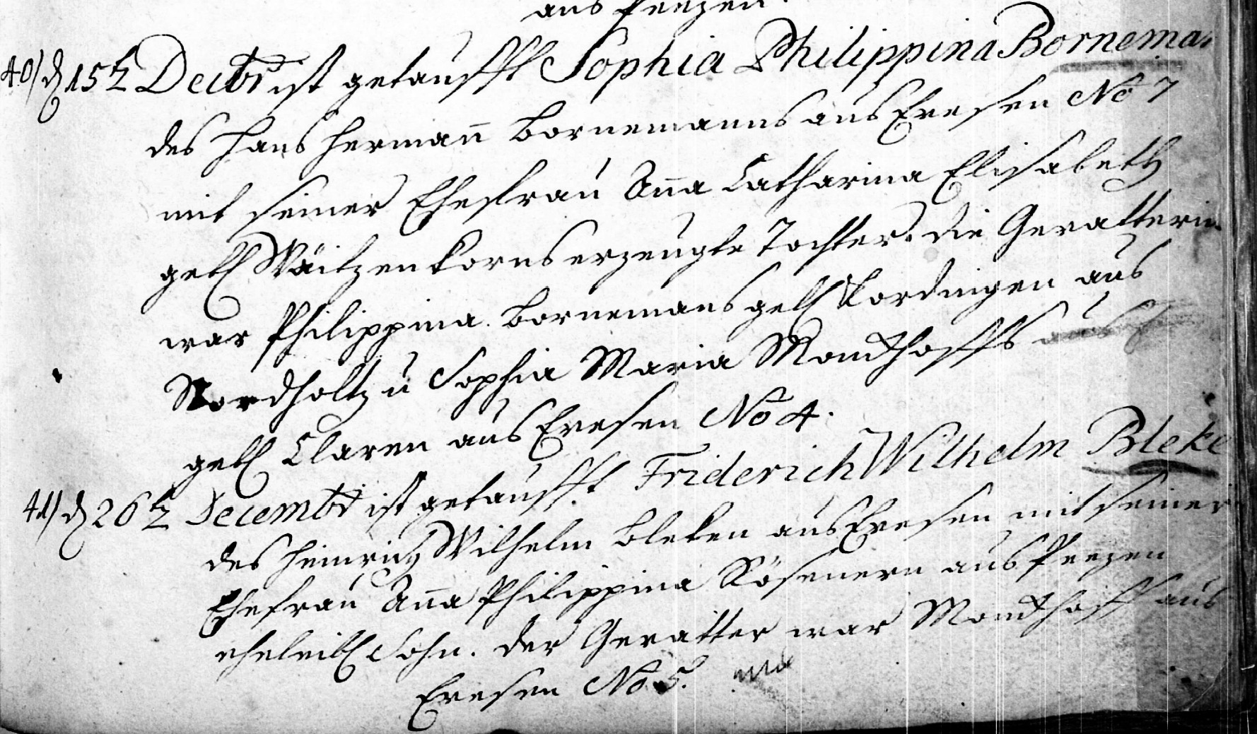 41) The 26th of Decembr. Fridrich Wilhelm Bleke was baptized,
