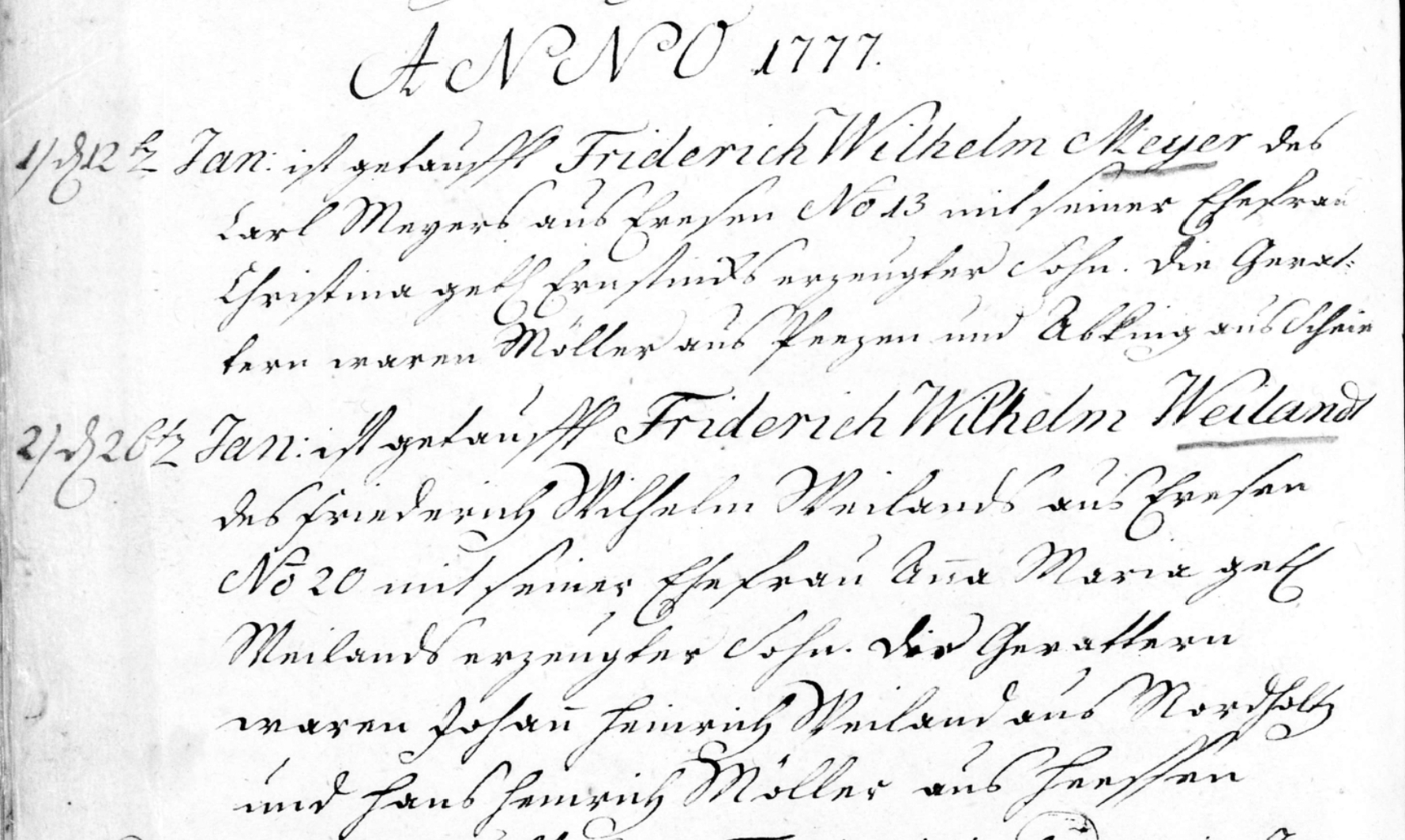 2) 26th Jan: Friderich Wilhelm Weiland baptized