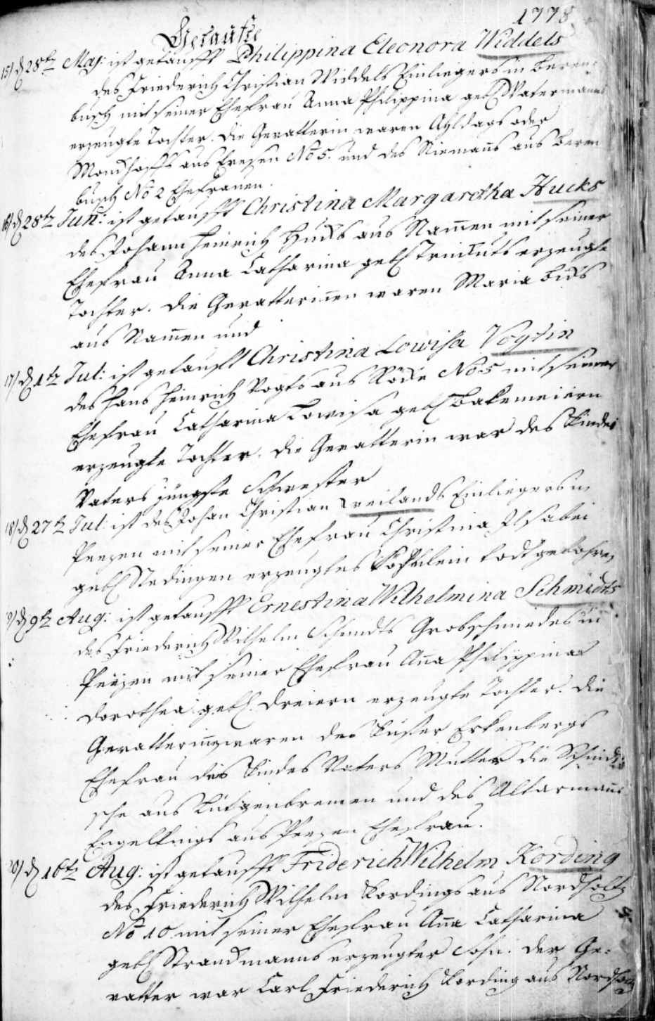 1778 Stillborn son of Johann Christian Weiland