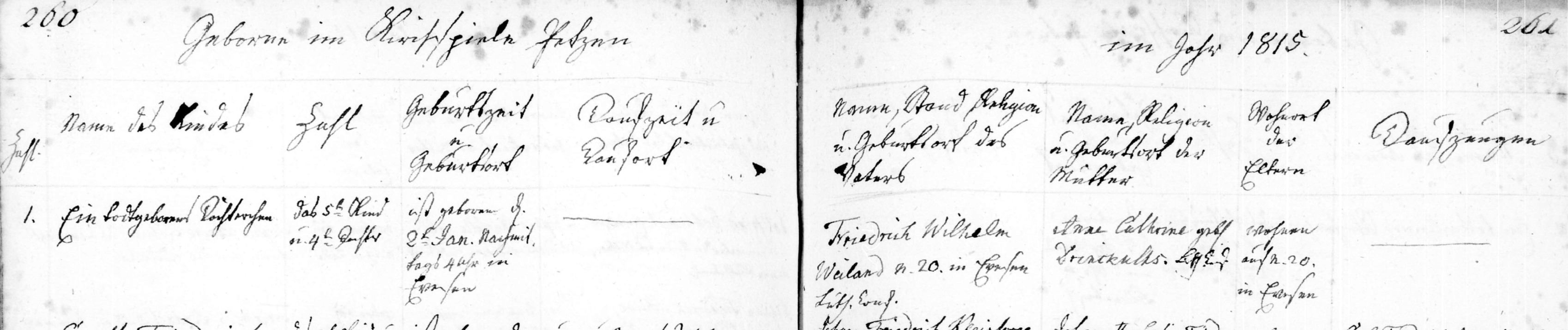 260 Geboren im Kirchspiele Petzen (Births in the Petzen Parish) im Jahr 1815 261