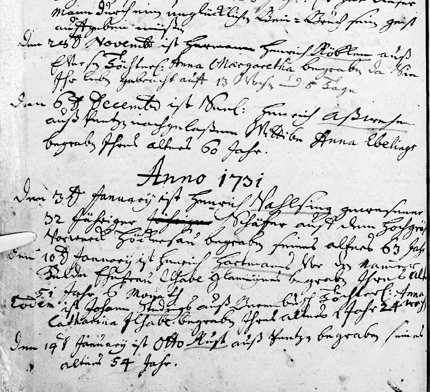 In the year 1731, On 3 January, Henrich Vahlsing, a shepherd, from the Count’s outlying estate farm at Höckersau, aged 63 years, was buried