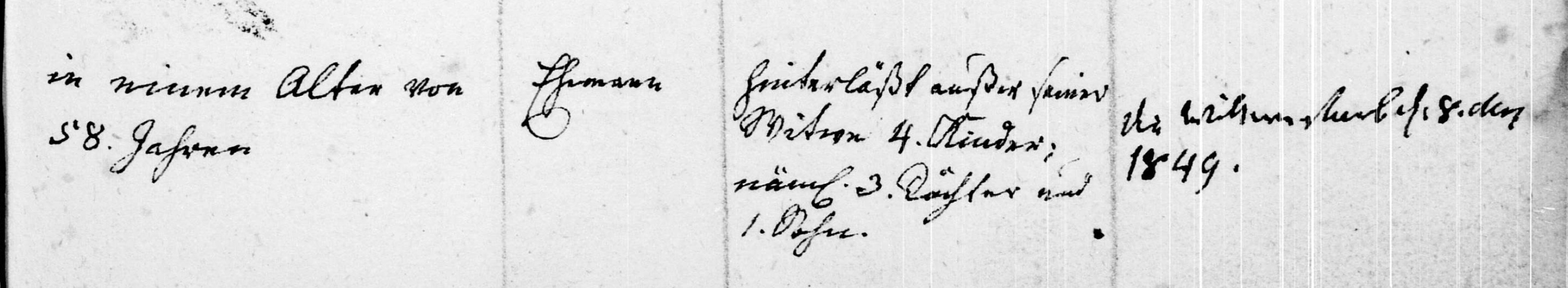 hinterläßt außer seiner Witve 4 Kinder, näm[lich]. 3 Töchter und 1 Sohn
