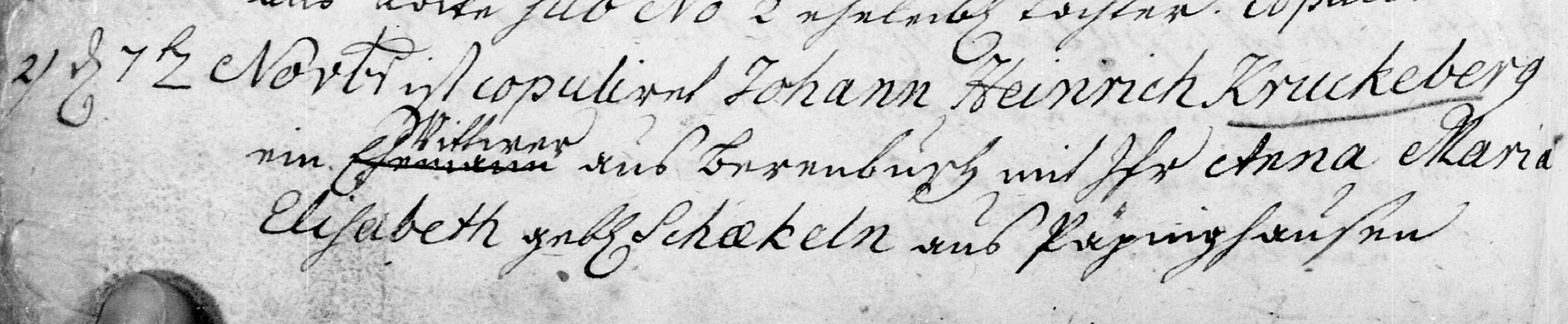 2) d 7ten Novbr ist copuliert Johann Heinrich Kruckeberg