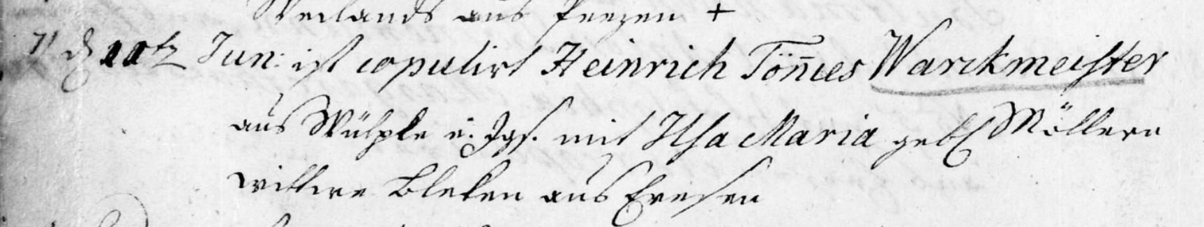 1780 Heinrich Tönnes Werkmeister Marriage