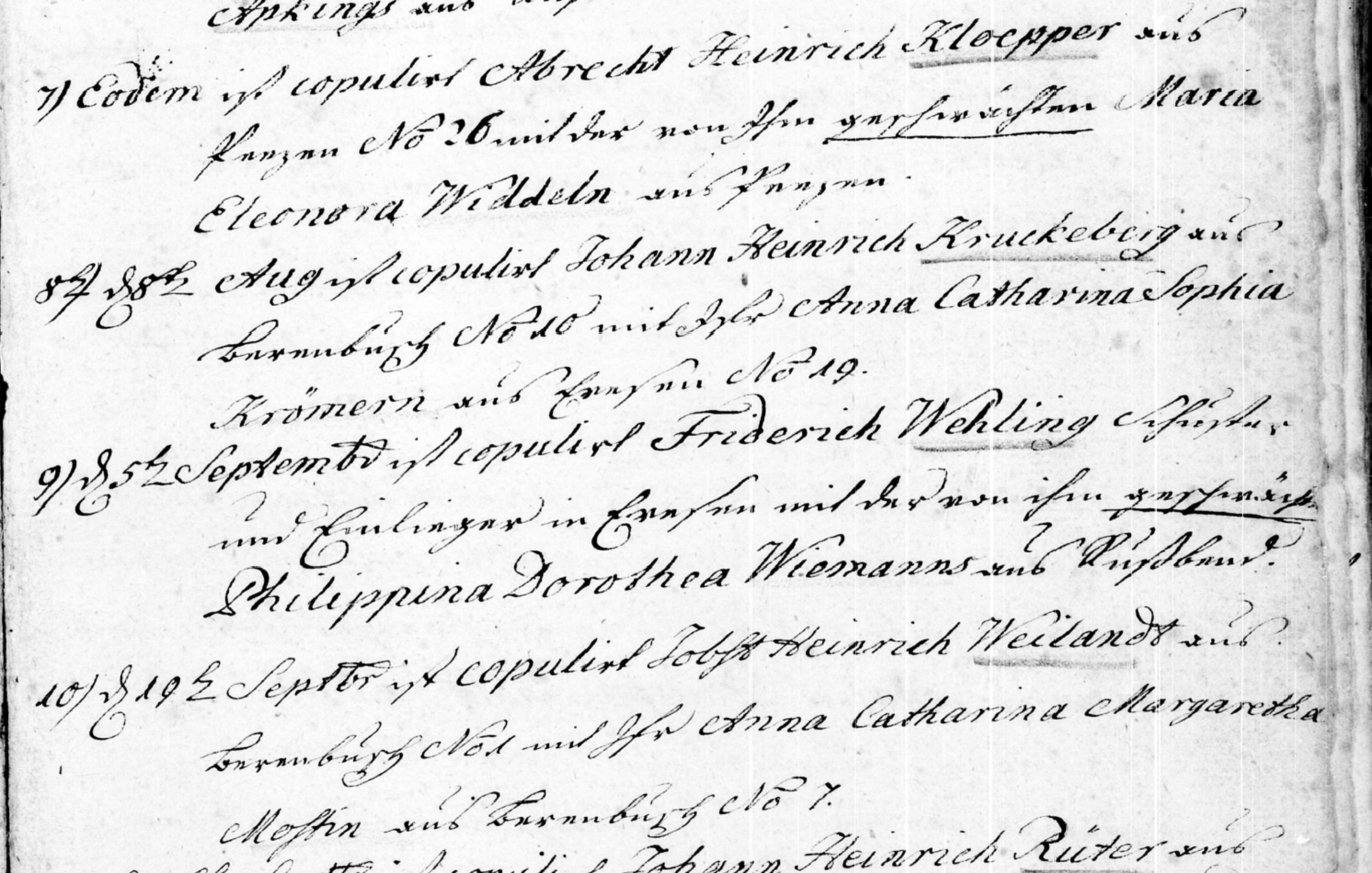 8) d 2 Aug ist copuliert Johann Heinrich Kruckeberg