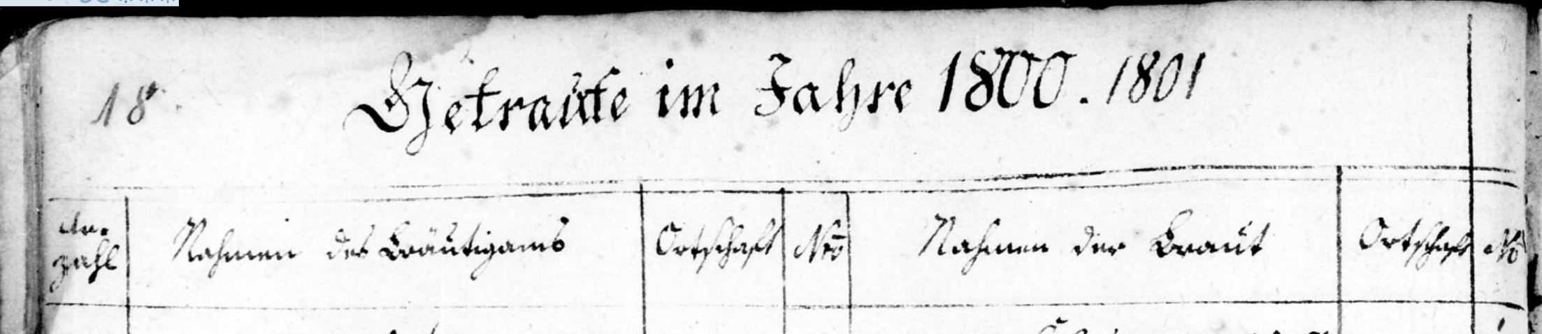 18 Getraute im Jahre 1801.1802 (Marriages in the years 1801. 1802)