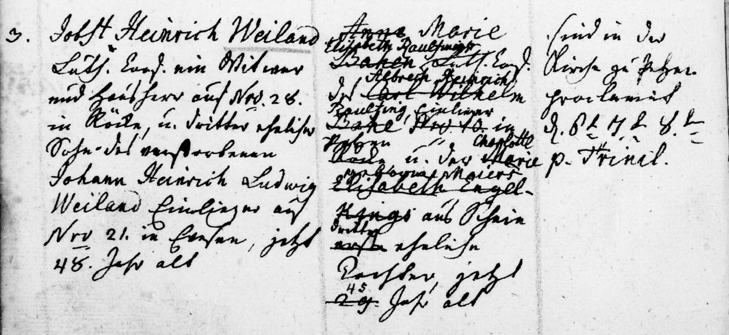 Jobst Heinrich Weiland Luth Conf ein Witwe und Haus L[ir?] aus No. 28 in Röcke und dritter ehelicher Sohn des verstorbenen Johann Heinrich Ludwig Weiland Einlieger aus Nr. 21. in Evesen, jetzt 48 Jahr alt. |