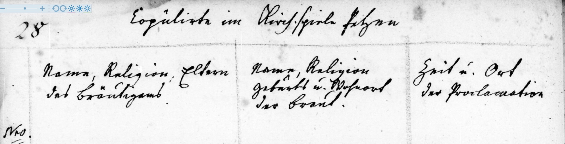 Name, Religion Geburts u. Wohnort der Braut |