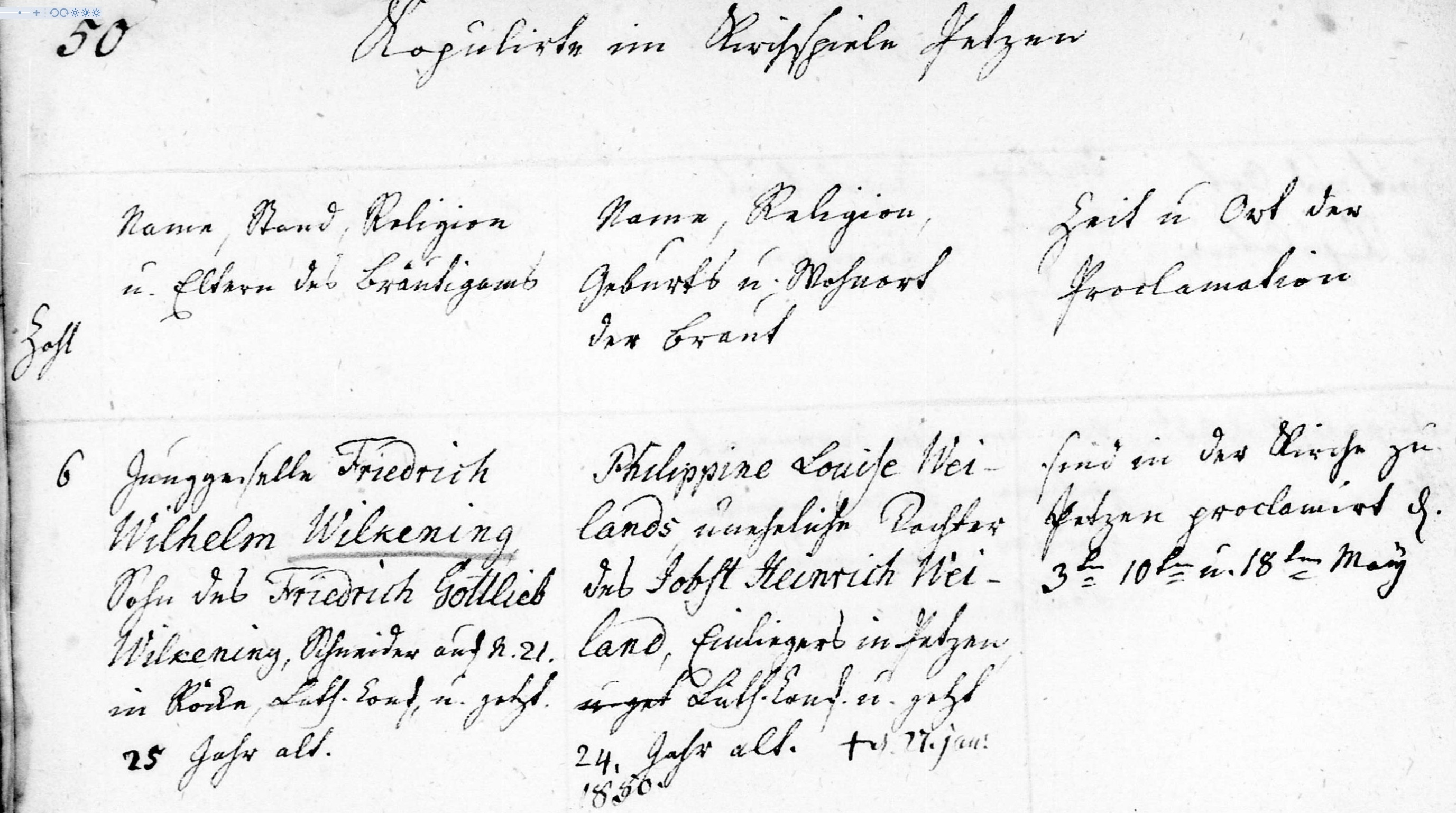 In 1812 Philippine Louise Weiland, illegitimate daughter of Jobst Heinrich Weiland, married Friedrich Wilkening.