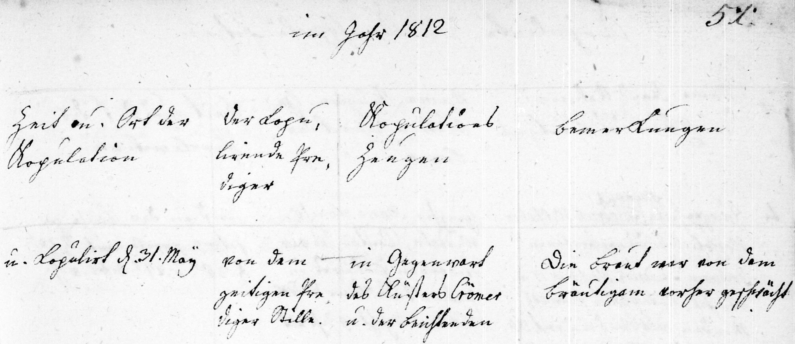 50                 Marriages in the Parish Petzen          |                      in the year 1812                   51