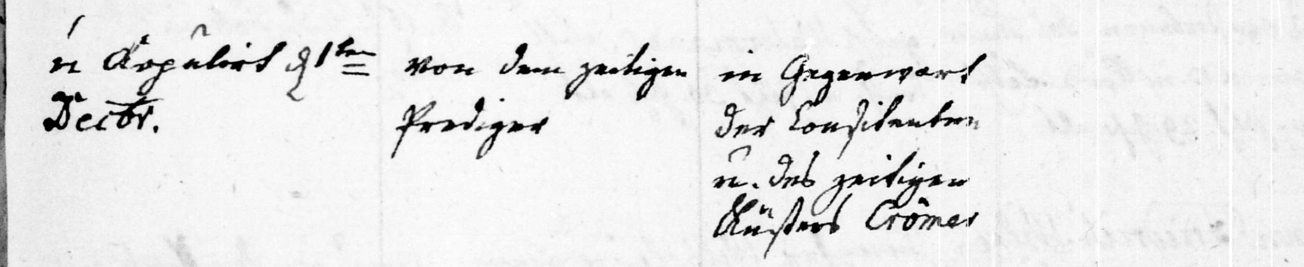 in Gegenwart der Confitenten u. des zeiten Küsters Crömer |