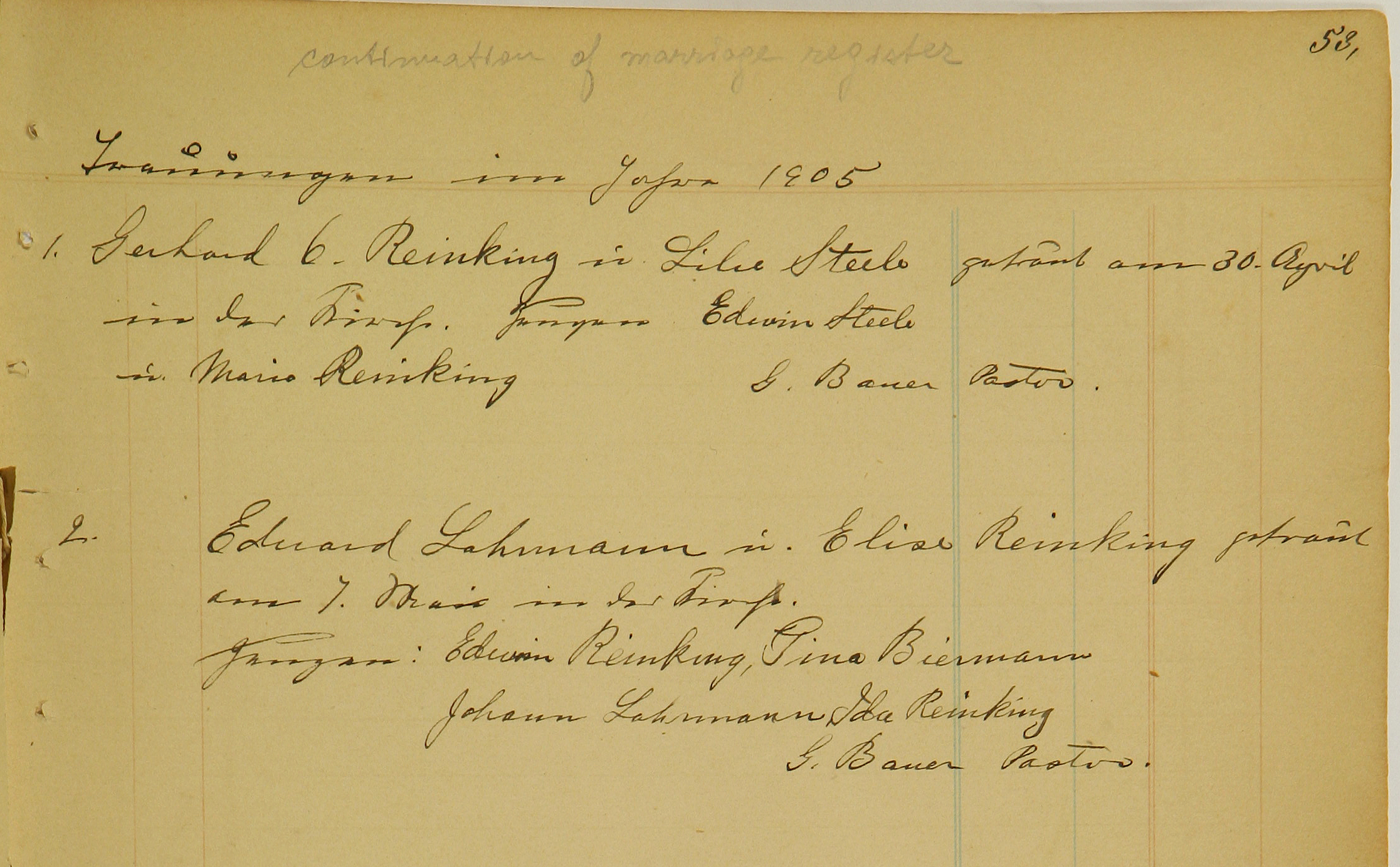u. Maria Reinking G. Bauer Pastor
