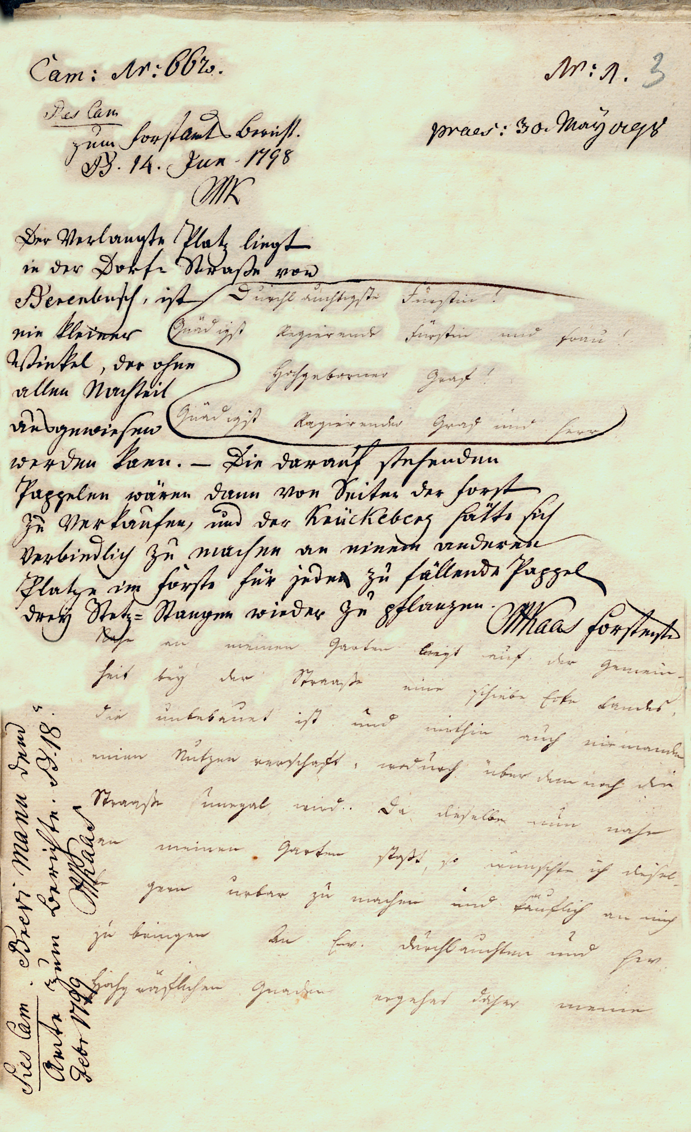 The Cammer requested a Forestry report that was written by MKass of the Forstamts, the foresty office. It is written in a large hand to the left of the petition.