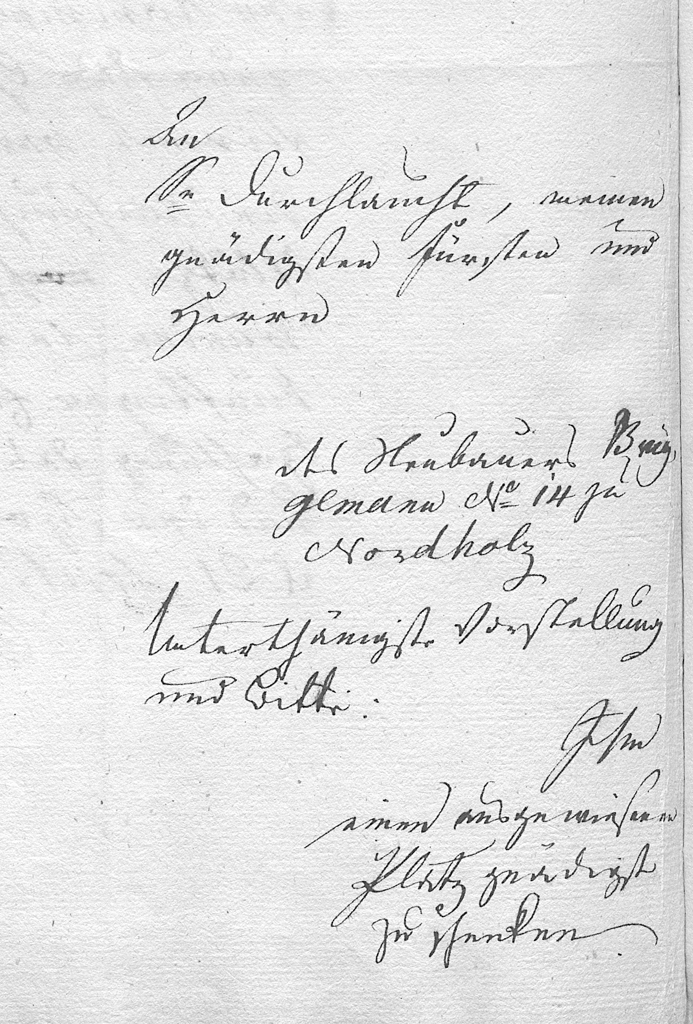 To His Serene Highness, my most gracious Prince and Lord, [from] the Neubauer Brüggemann, No. 14 in Nordholz Most humble statement and petition: I humbly request that the allotted plot be most graciously granted to me. |