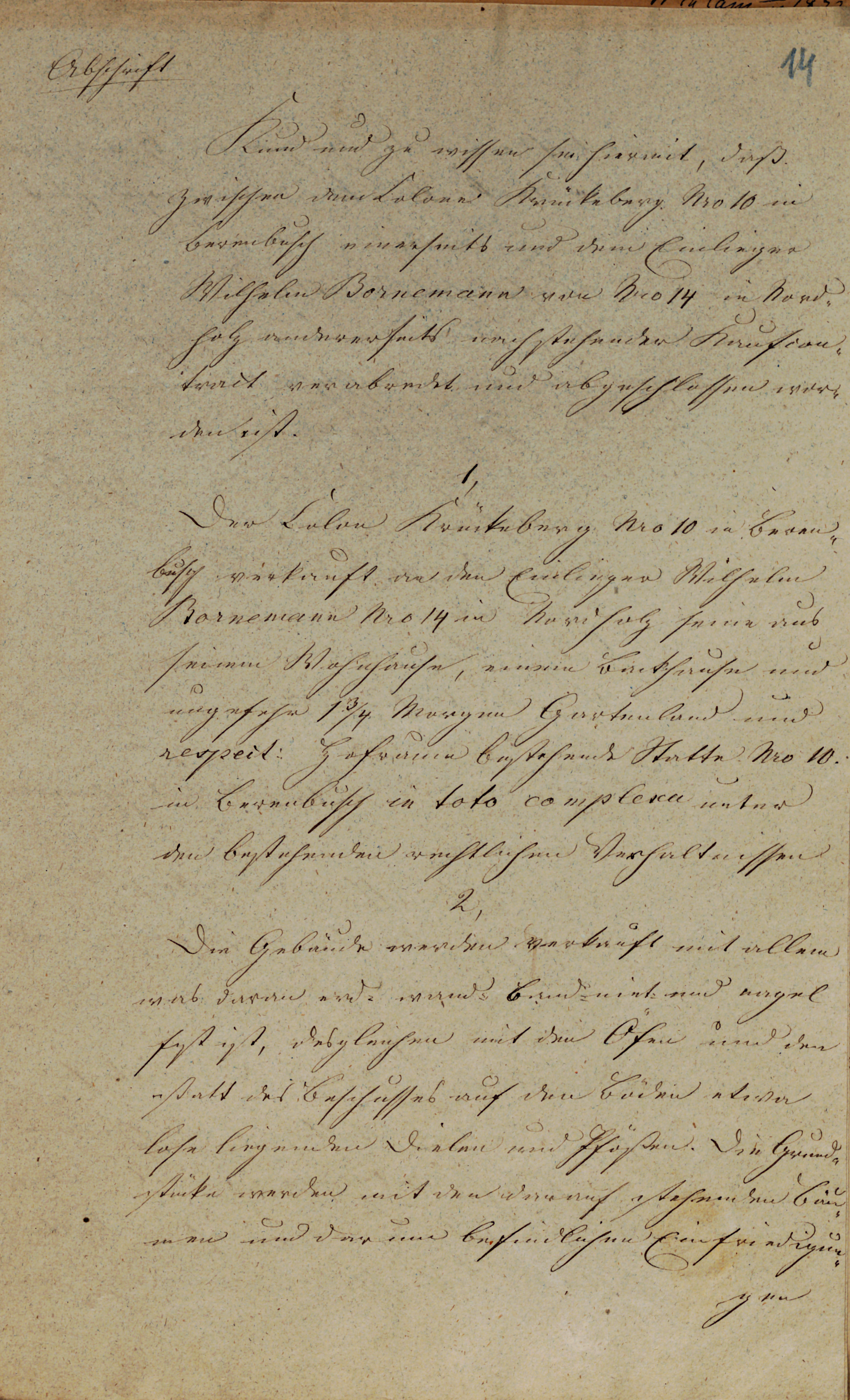 Nro 10 in Berenbusch einerseits und dem Einlieger Wilhelm Bornemann