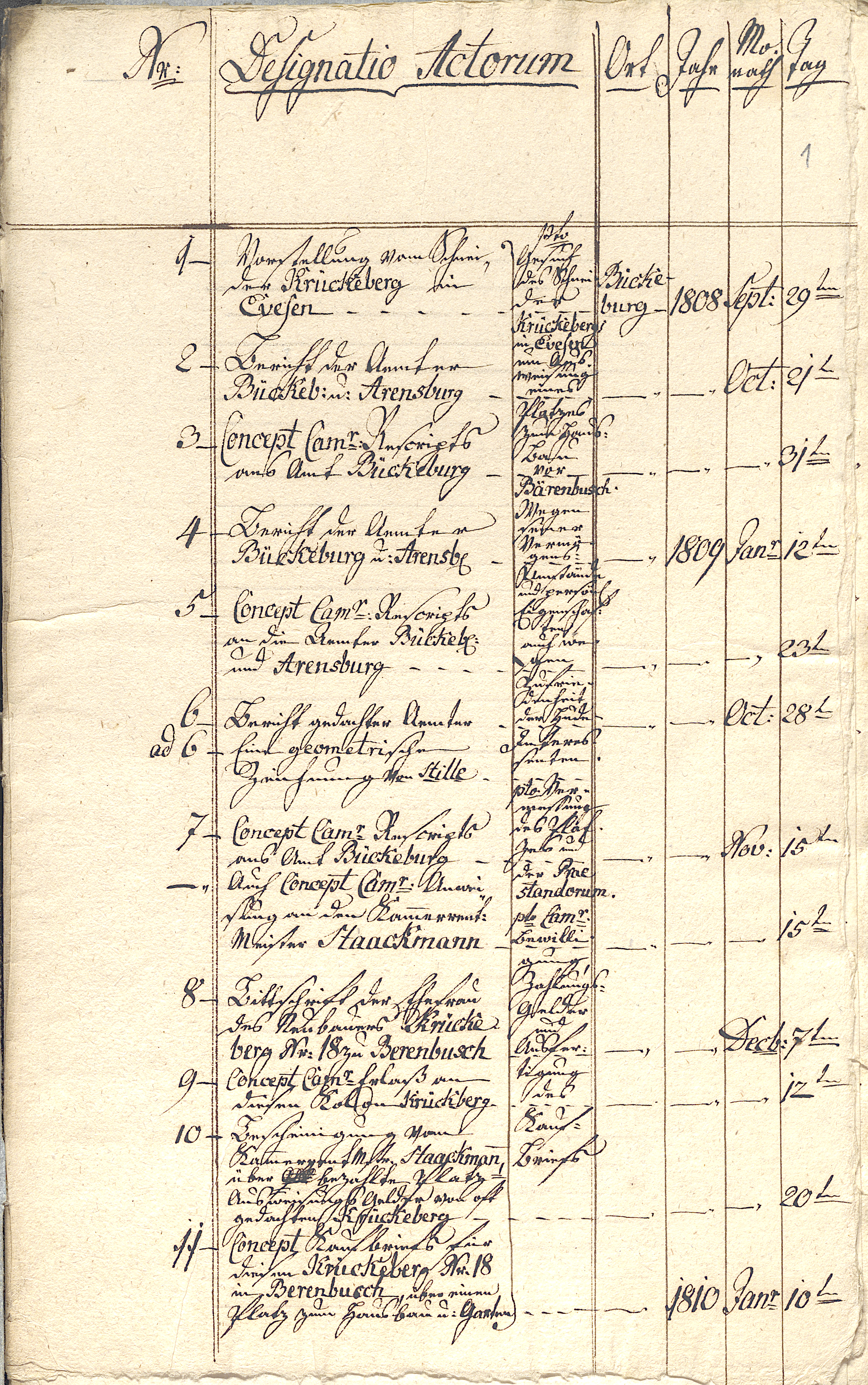 Concerning the petition of the tailor Krückeberg in Evesen for the designation (Ausweisung) of a plot for house construction near Bärenbusch. Pto Gesuch des Schneider Krückeberg in Evesen um Ausweisung eines Platzes zum Hausbau vor Bärenbusch. |