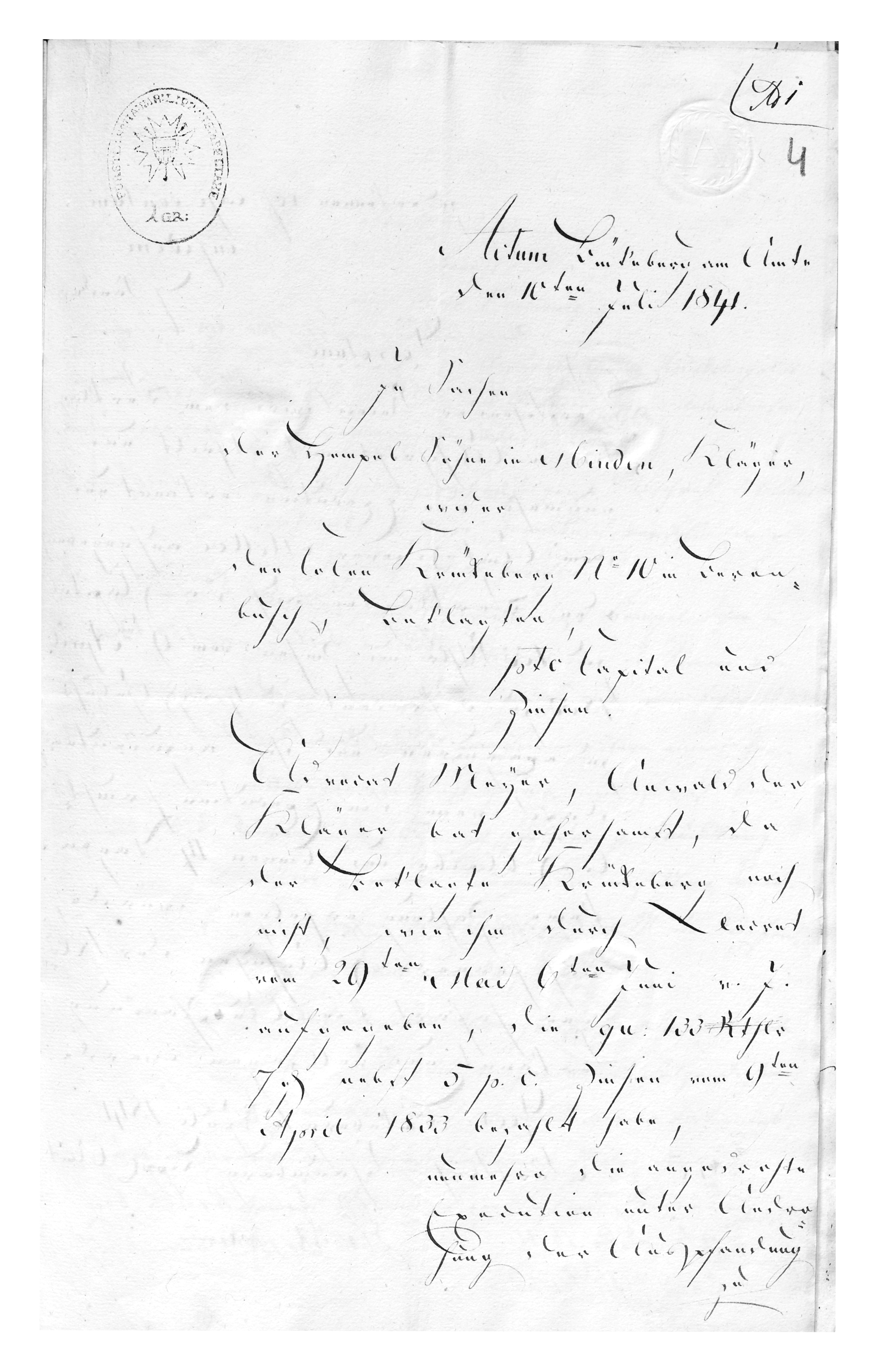 percent from 9 April 1833, and a fee of 4 Mariengroschen. He is