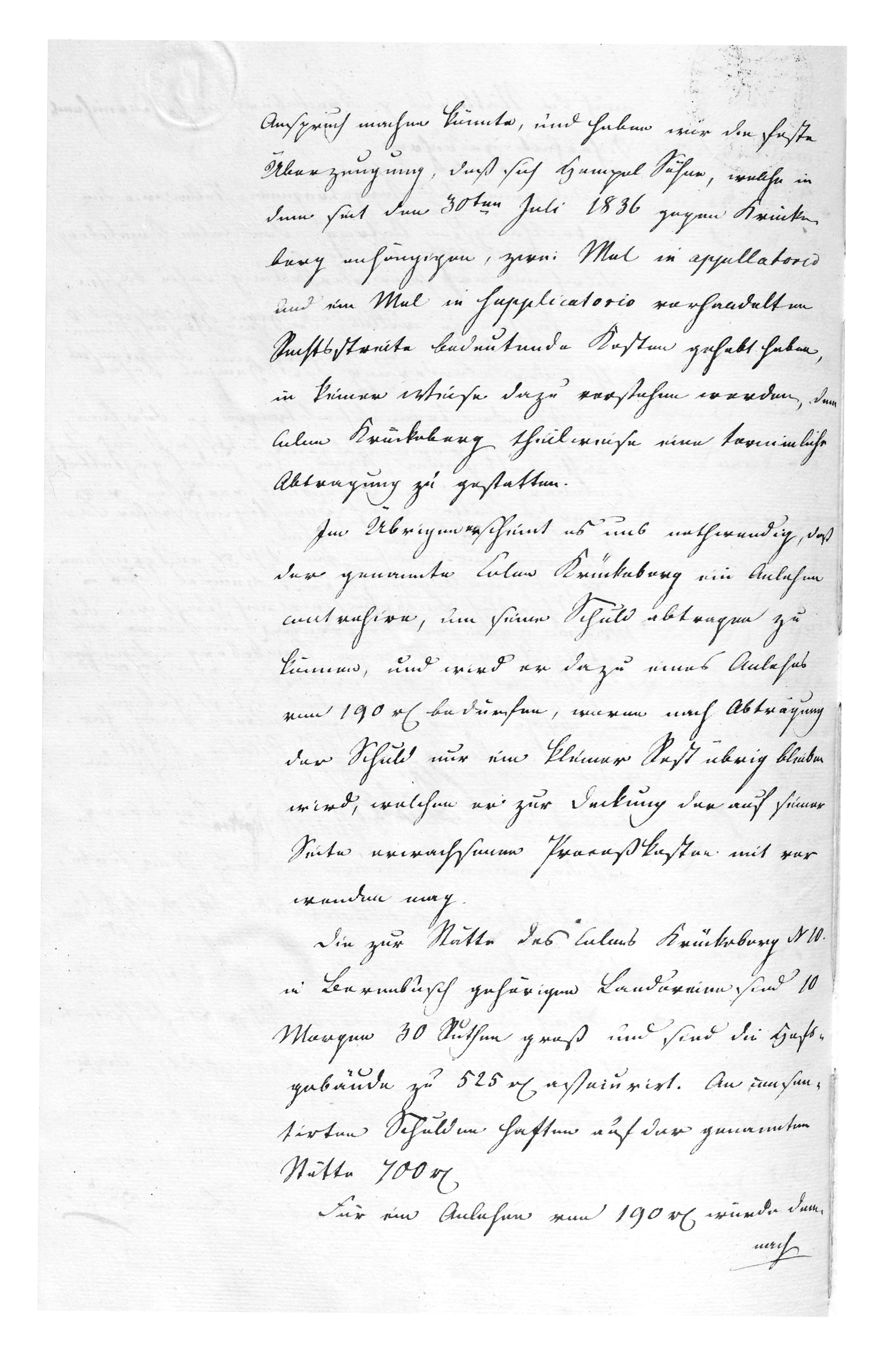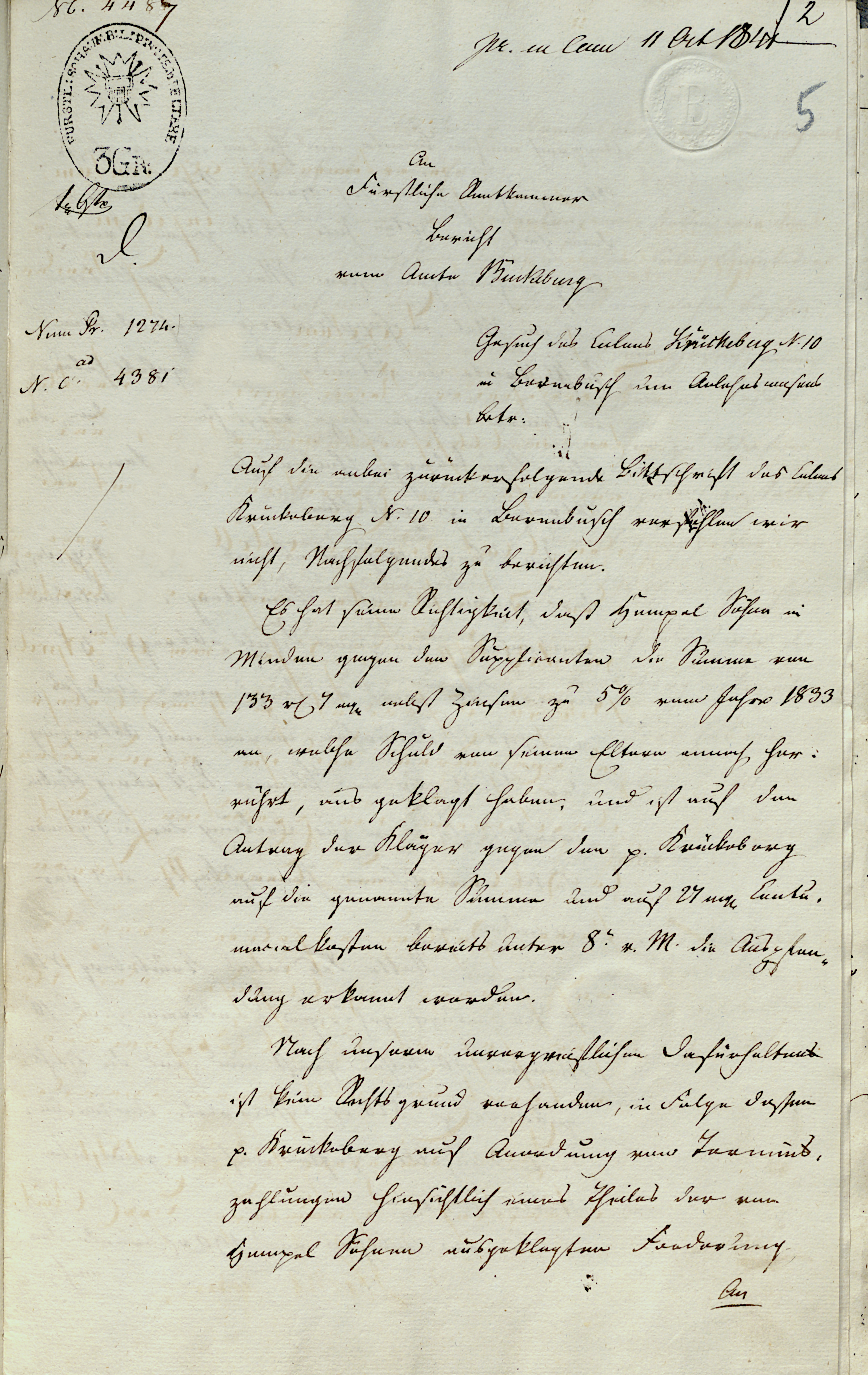 Chamber registry no. 4487; presented in the Chamber on 11 Oct 1841. D. Protocol no. 1274; with reference to Chamber file no. 4381. To the Princely Rent Chamber Report from the Amt of Bückeburg Regarding: Petition of the colon Krückeberg No. 10 in Berenbusch concerning a loan. On the attached petition by Colon Krückeberg No. 10 in Berenbusch we report as follows. It is correct that Hempel & Sons in Minden have sued the petitioner for the amount of 133 rthl 7 Mariengroschen plus 5% interest accruing since the year 1833 for a debt that still stems from his parents, and that—at the plaintiffs’ request—distraint has already been ordered against Krückeberg for that sum and for 27 mg in percentage-based court costs. In our provisional, non-prejudicial opinion there is no legal basis on which the petitioner could claim the scheduling of installment payments with respect to part of the claim brought by Hempel & Sons. We are firmly convinced that Hempel & Sons—who, in the lawsuit pending since 30 July 1836 against Krückeberg, have conducted proceedings twice in appellate session and once in supplicatory session and have thereby incurred considerable costs—will in no way agree to permit Colon Krückeberg a partial installment plan. Apart from this, we consider it necessary that the said Colon Krückeberg take out a loan in order to pay down his debt; for this he will need a loan of 190 rthl. After payment of the debt only a small remainder will be left, which he may use to cover the litigation costs incurred on his side. The lands belonging to the holding (Stätte) of Colon Krückeberg No. 10 in Berenbusch comprise 10 Morgen 30 Ruthen, and the holding's buildings are insured for 525 rthl. Inventoried debts attached to the said holding amount to 700 rthl. A loan of 190 rthl would, upon provision of sufficient security on the holding of the petitioner Krückeberg in Berenbusch, be grantable. On the basis of the foregoing we submit the most humble request that Colon Krückeberg, upon his petition, be informed that his request to be allowed to pay part of the claim of Hempel & Sons in Minden by installments cannot be approved; however, he may be permitted to take out a loan of 190 rthl for the settlement of that claim. Finally, we note that we have temporarily stayed execution of the distraint ordered against Krückeberg. Bückeburg, 7 October 1841. Hauck Dr Neuhsel Höcker Rentcammer Rescript: The Amt shall, as requested, notify Krückeberg. B[ückeburg], 14 Oct. 1841. Spreng turn the page. |
